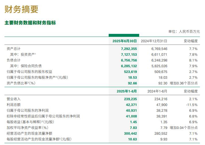 中国东说念主寿上半年扫尾营收2392.35亿元,同比增长2.1%;包摄于母公司鼓舞的净利润409.31亿元,同比增长6.9%。猖狂期末,中国东说念主寿总财富为7.29万亿元,投资财富为7.13万亿元。